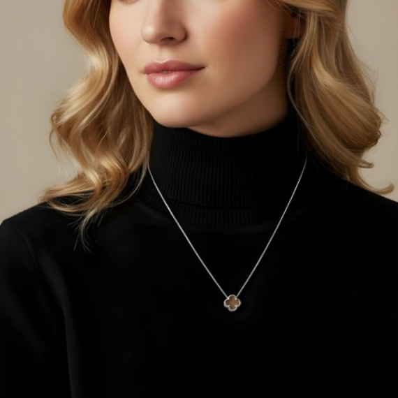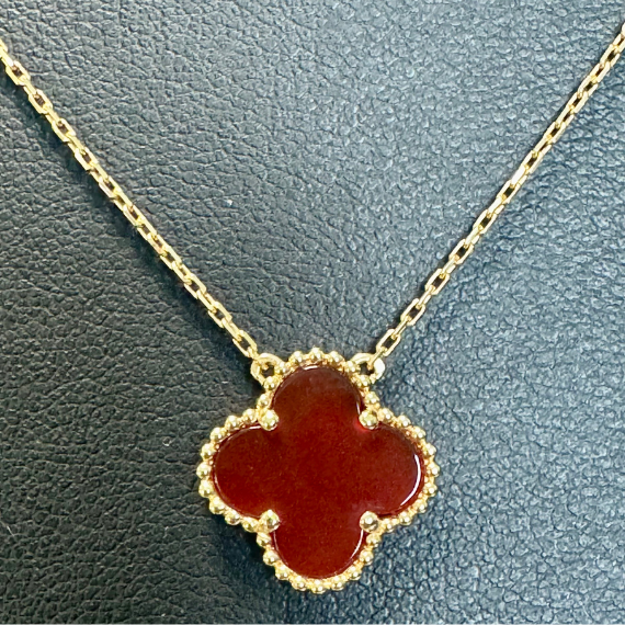 - Pendant: Red mother of pearl clover motif for a bold, luxurious look