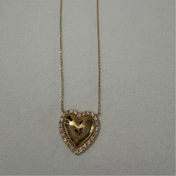Celebrate love and elegance with this exquisite 18K gold heart pendant, delicately lined with natural diamonds along the edges, offering radiant sparkle. Timeless and romantic, it makes the perfect gift or personal keepsake. The adjustable 18″ chain ensures a customizable fit, making it ideal for layering or wearing solo.