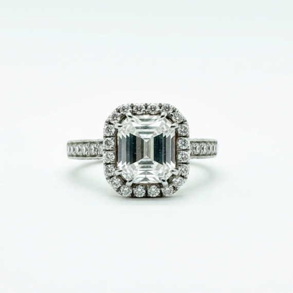 18k White Gold Emerald-Cut Diamond Halo Ring