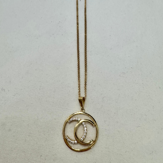 This elegant necklace features a distinctive CC pendant, enhanced with natural diamonds for a touch of luxury. Crafted from 18K yellow gold, it combines sophistication and versatility, making it the perfect accessory for any occasion.