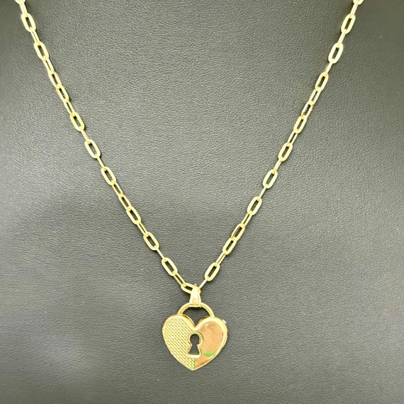 Heart-Shaped 18K Pendant on Paperclip Chain – 18″